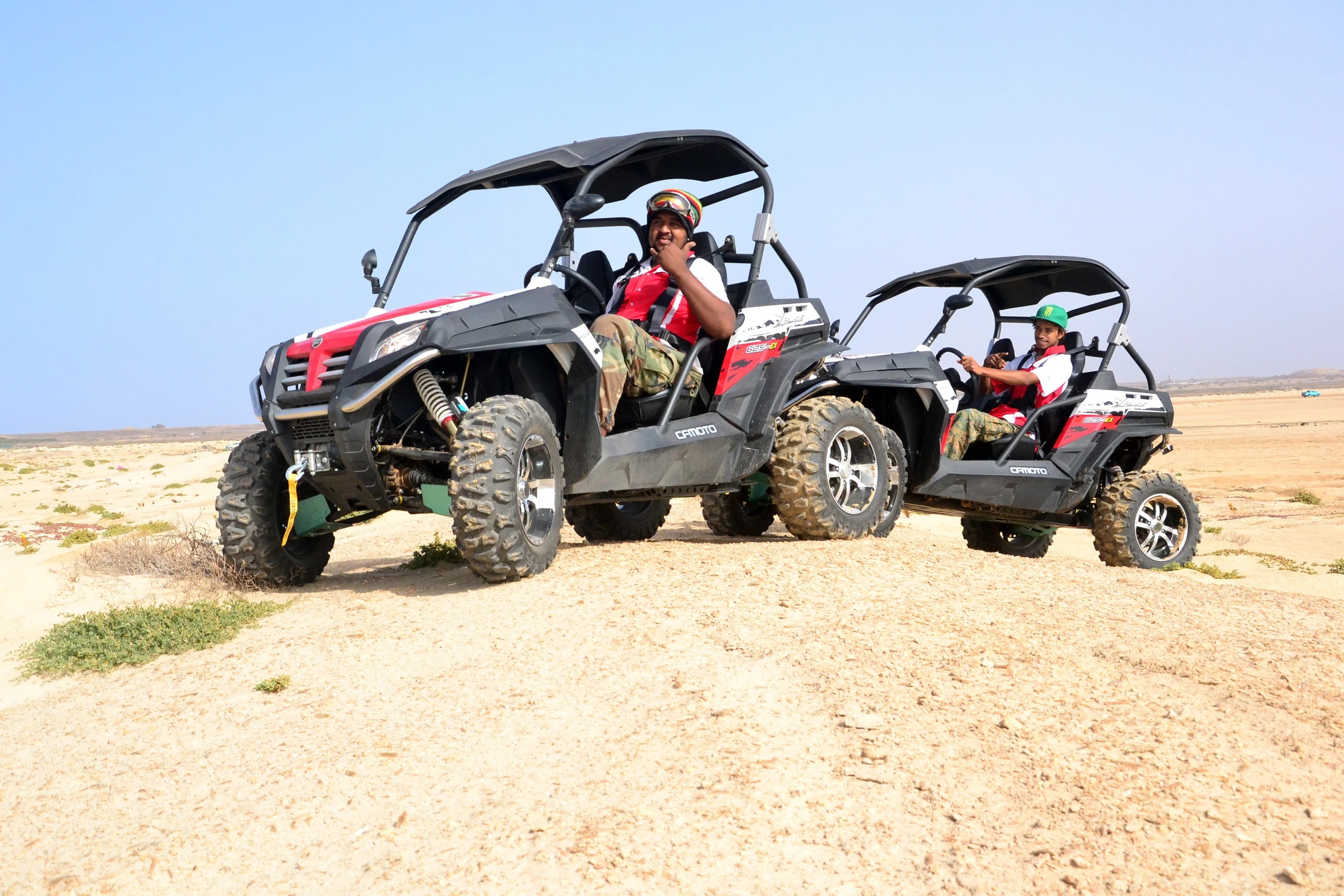 Um passeio de costa a costa, off road de 4 horas passando pelos destaques do Sal: Baía da Murdeira, Palemeira, Buracona, Miragem na Terra Boa, topo do Vulcão em Pedra de Lume com vista panorâmica das salinas, Baía Tubarões, conduzindo os potentes buggies 4×4. Com este passeio terá a vantagem de ter um guia a mostrar o caminho, enquanto você guia o buggy. Cada buggy tem capacidade para 2 pessoas é automático e fácil de dirigir.