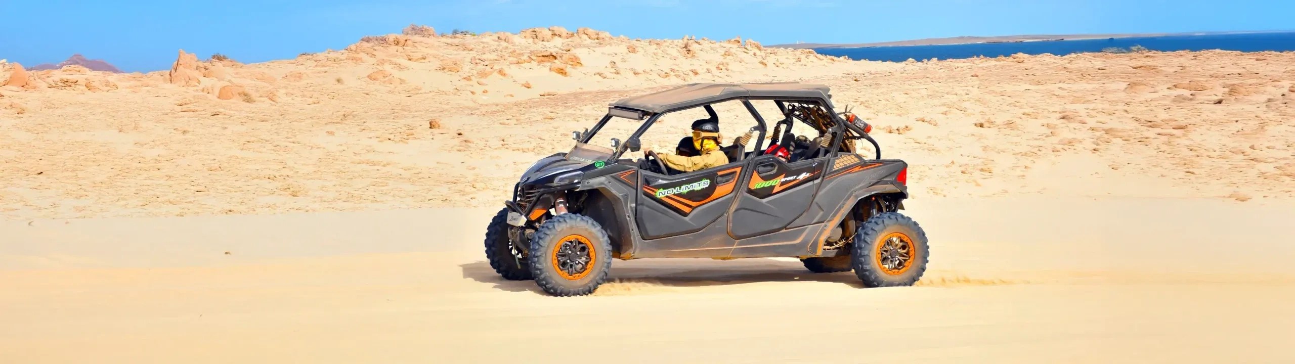 Este Passeio irá leva-lo a descobrir a parte sul da ilha, apos a partida dos escritórios, o passeio inicia-se em direção às Salinas de Santa Maria, rodeadas por belas dunas de areia que o levarão até à Praia do Kite, a praia preferida dos kitesurfistas. Depois seguirá à Serra Negra de onde terá a oportunidade de observar uma deslumbrante vista panorâmica sobre o sul da ilha e, se o tempo o permitir, até à ilha da Boa Vista. De seguida, atravessarão o deserto com um a paragem no Oásis Palha Verde, um delicioso pedaço escondido da natureza antes de chegarmos à costa oeste do Sal, na praia de Ponta Preta, a mais bonita da ilha.