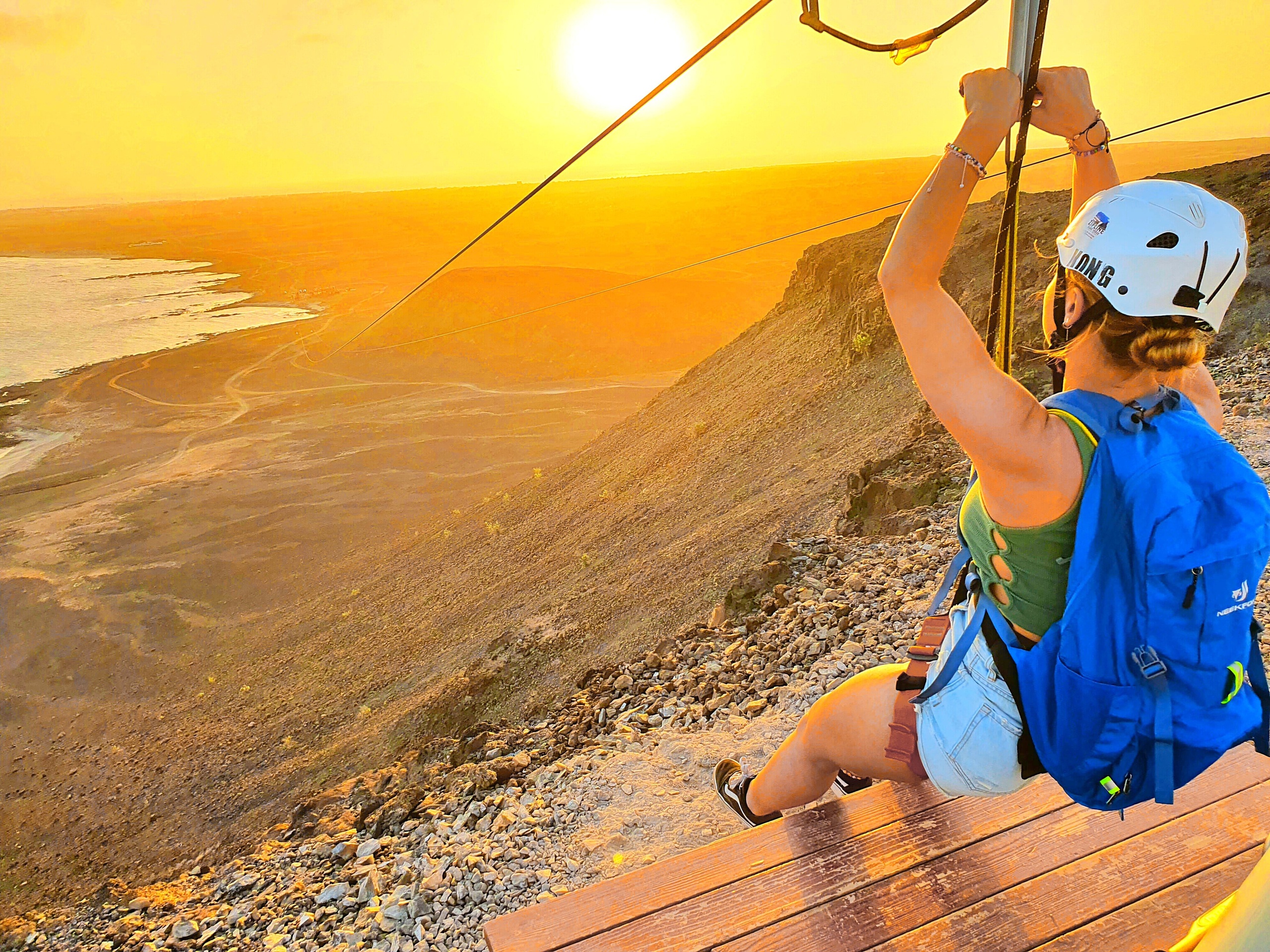 Recomendado para todos, sem limites de idade! Com a Zipline Cabo Verde poderá ver a Ilha do Sal de outro ponto de vista, pois no topo da montanha chega-se a um “paraíso terrestre”. Você também terá a oportunidade de tomar um aperitivo relaxante antes do voo com lanches e bebidas locais e música a 100 metros de altura! Fantástico! Finalmente a sensação de voar como uma águia sobre o oceano! Isto é Zipline Cabo Verde!