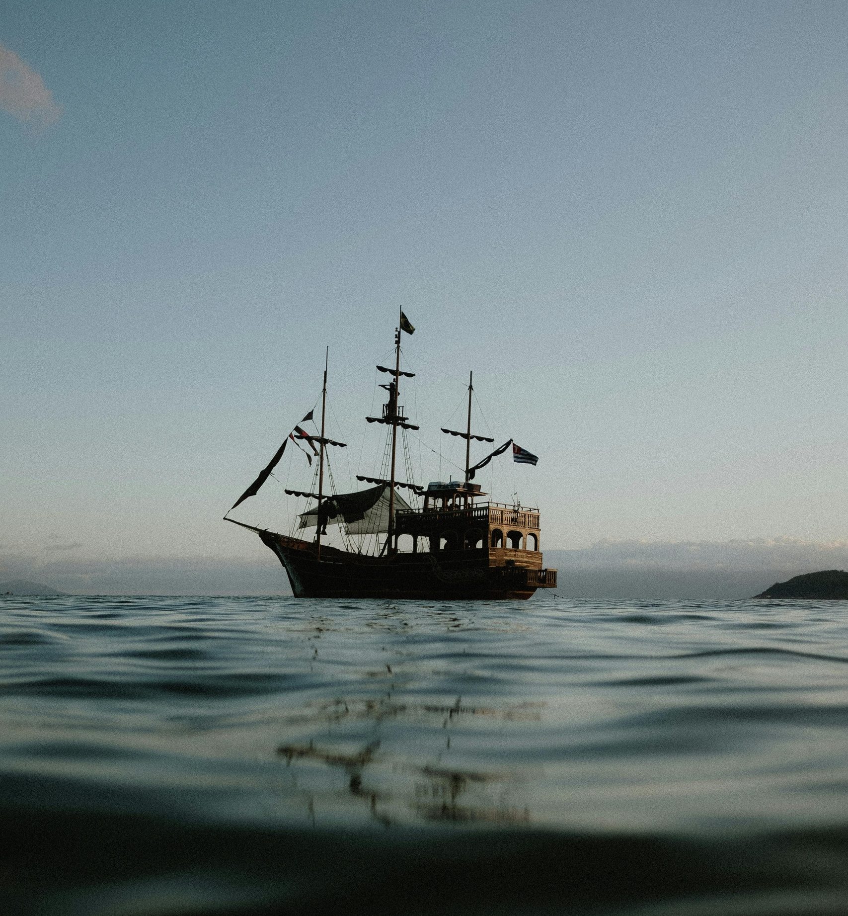 Experiência a bordo de um navio pirata com muito entretenimento e refeições ligeiras.